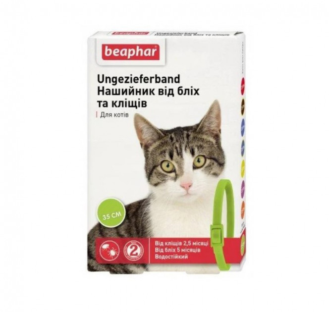 Нашийник Беафар для кішок від бліх і кліщів салатовий 35см Beaphar