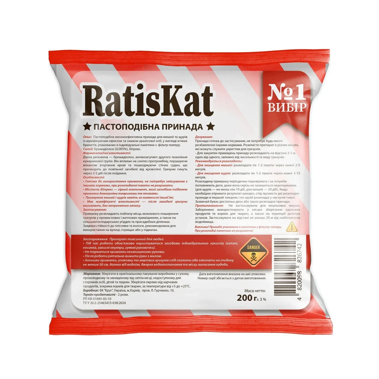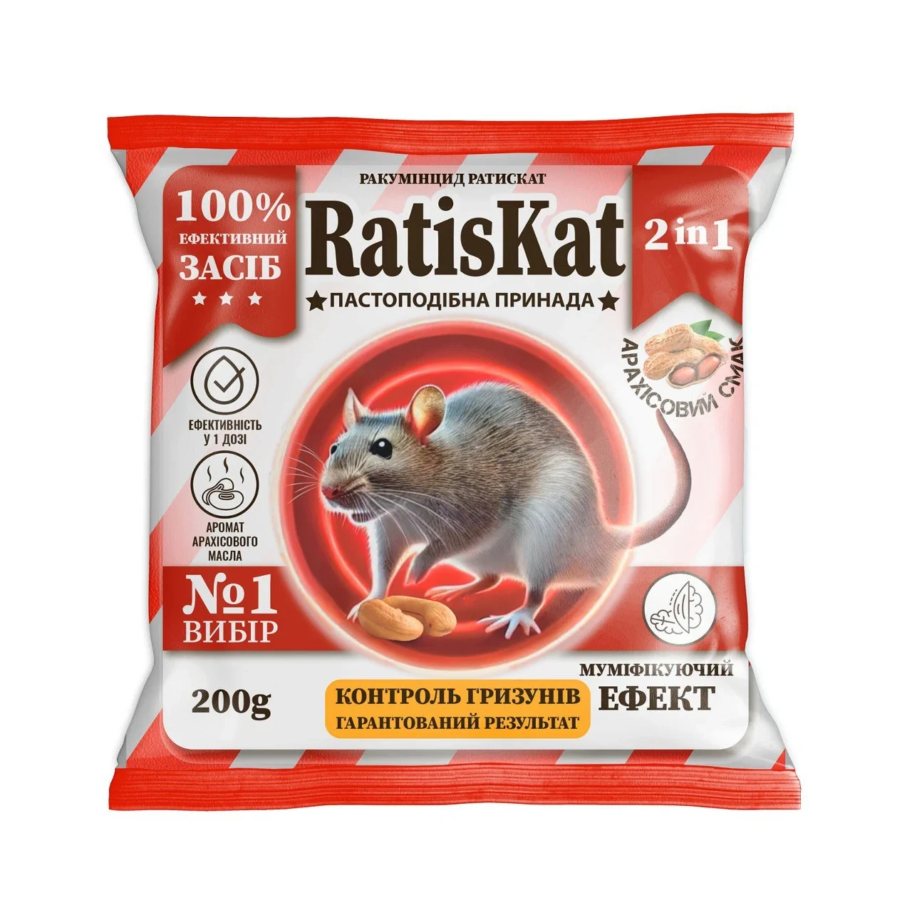 Отрута для щурів та мишей «Ракумінцид Ратискат» (готова пастоподібна принада) з ароматом арахісу 200 г, Круг