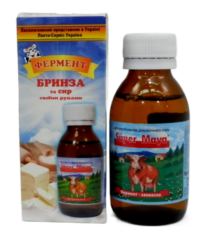 Спеціальний високоякісний фермент для приготування бринзи, сиру та моцарели у себе вдома. Це рослинний продукт, призначений для згортання молока, відсутність у ньому сичуги відбивається у благородному смаку продукту – сир виготовлений таким чином не гірчить, підходить для вегетаріанського та кошерного харчування. Ренін "Super Maya" економно витрачається – однієї пляшечки вистачить для переробки 100-150 літрів молока.