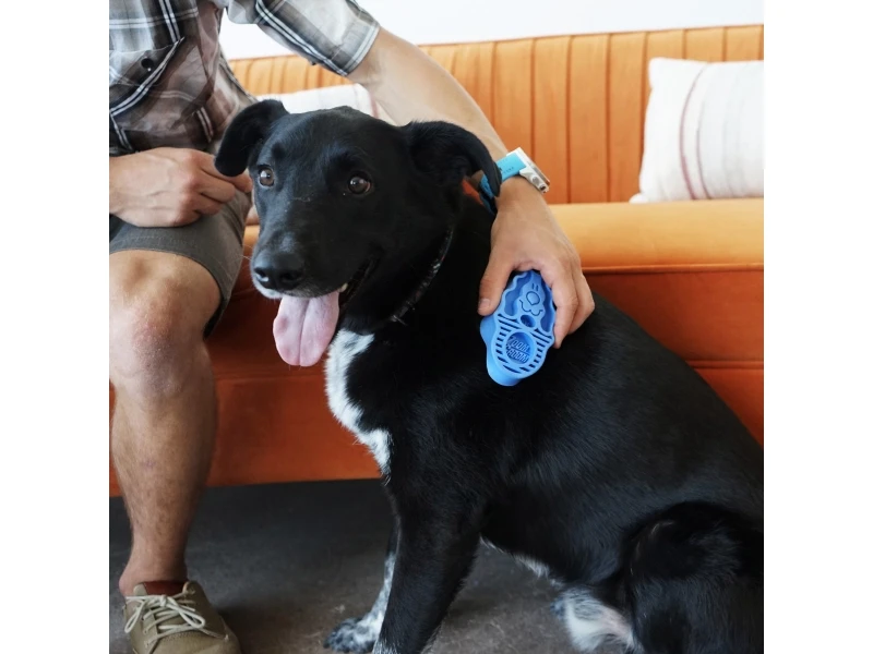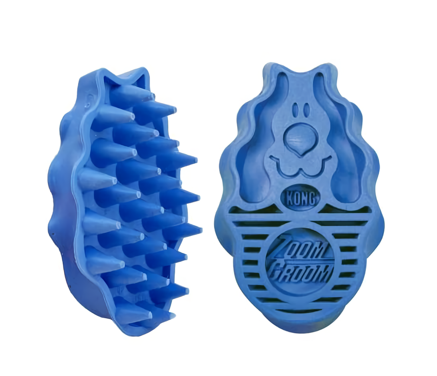 Завдяки унікальній конструкції з гнучкими гумовими зубцями, щітка-масажер KONG ZoomGroom дбайливо очищає шкіру та шерсть, а також забезпечує приємний масаж. Це допомагає не лише покращити кровообіг, але й зміцнити зв'язок між вами та вашим улюбленцем під час догляду.