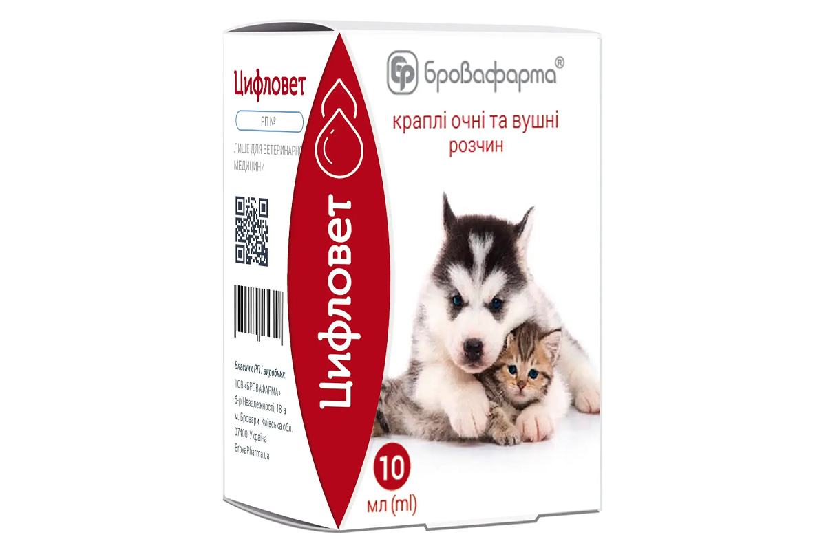 Очні краплі для собак і котів виробництва БРОВАФАРМА — універсальне і вигідне рішення для власників тварин. Цифловет безпечний, має широкий спектр дії та доступну ціну. Цифлодекс допомагає у складних випадках, коли інфекція супроводжується запаленням.