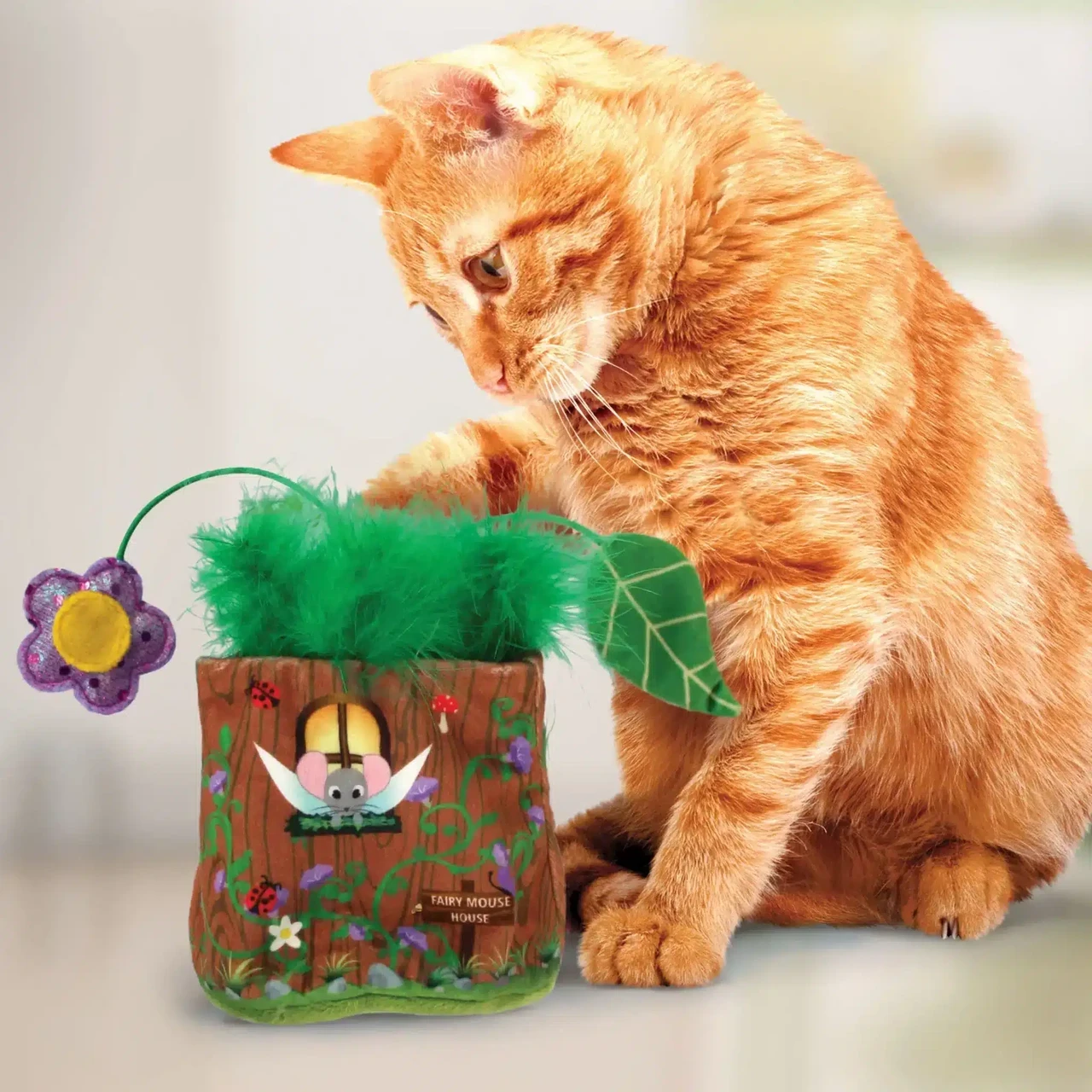 KONG Puzzlements Hideaway містить дві прив’язані іграшки, які задовольняють природні інстинкти котів досліджувати, полювати та ловити, одночасно забезпечуючи активне розумове та фізичне збагачення. Стовбур дерева, що тріщить, викликає інтерес у котів, а верхівка з пір’я спонукає до дослідження. Іграшки KONG North American Premium Catnip з блискучим листям і квітами, створені для веселощів та гри.