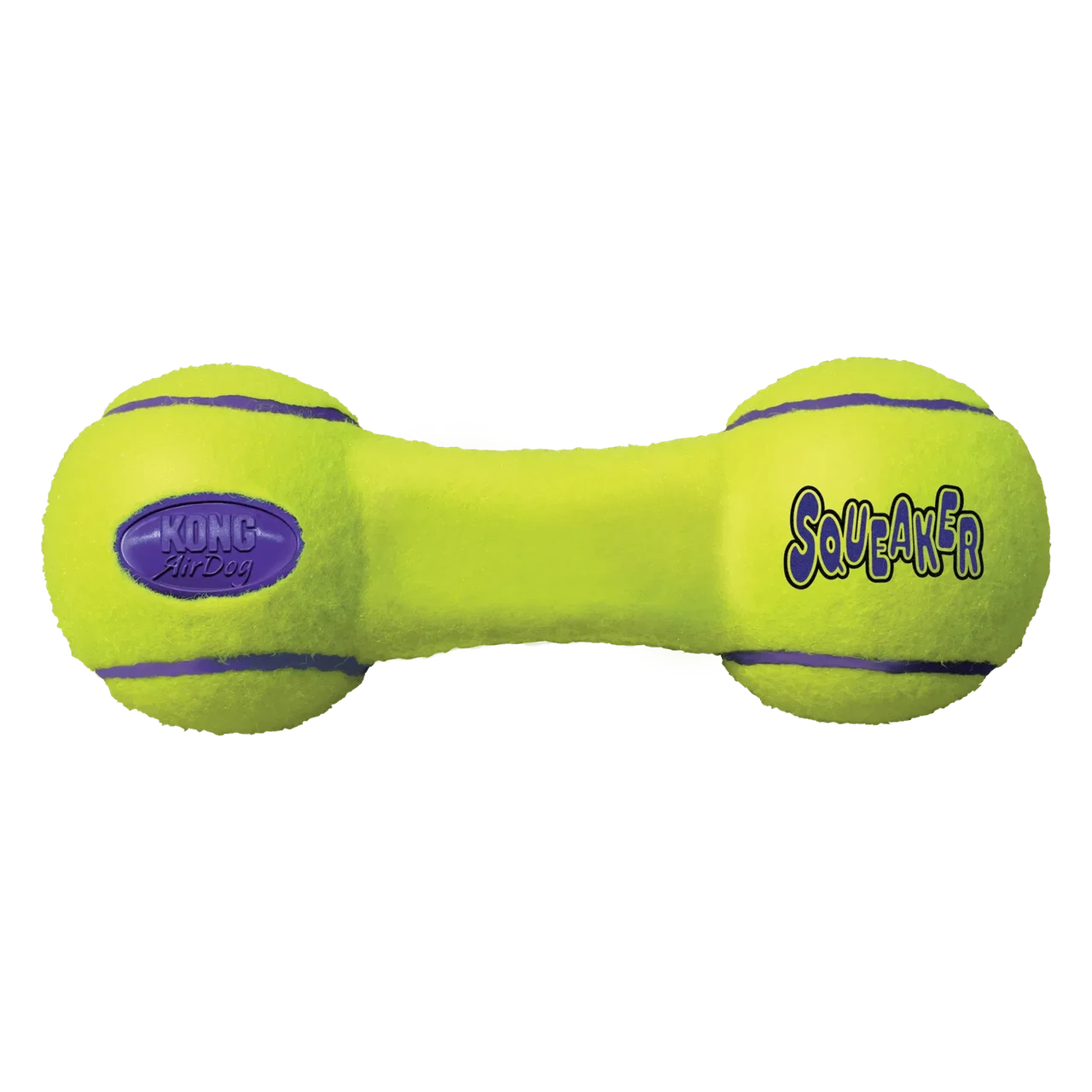 - В іграшці KONG Air Squeaker Dumbbell поєднані 2 традиційні собачі іграшки: тенісний м’ячик і пискавка, що робить її ідеальним вибором для ігор з апортом