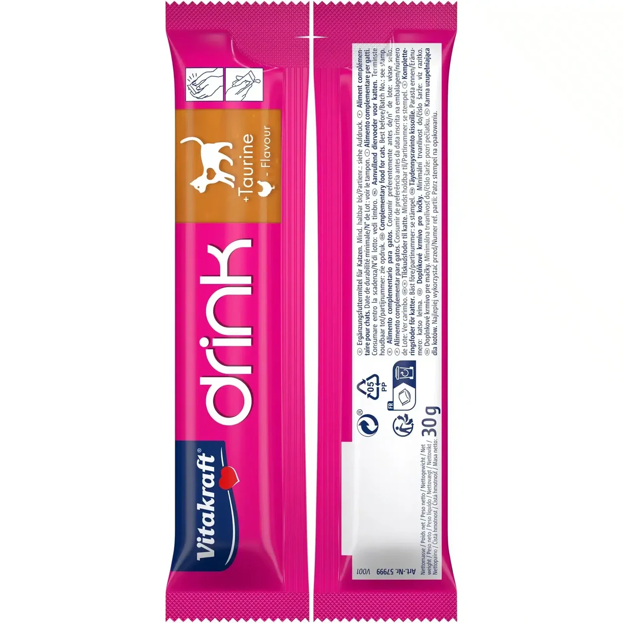 Апетитний напій для котів шматочками м’яса Вітакрафт Vitakraft CAT DRINK зі смаком курки і таурина 5 шт × 30 г