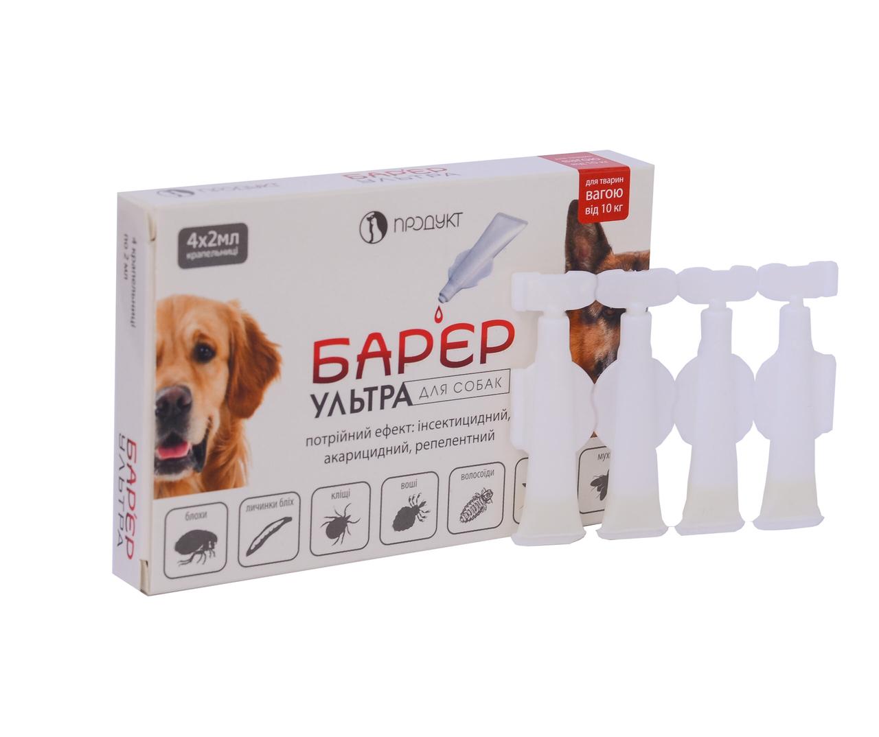 Бар’єр Ультра краплі від бліх та кліщів для собак 10 – 20 кг (4 ампули х 2 мл) Продукт