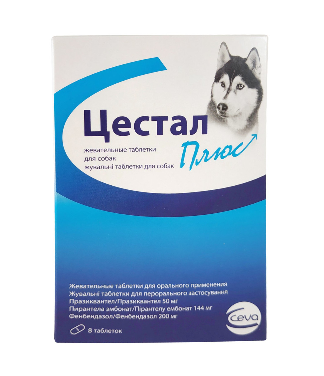 Цестал Плюс антигельмінтик для цуценят і собак зі смаком печінки (блістер 8 таблеток), Ceva