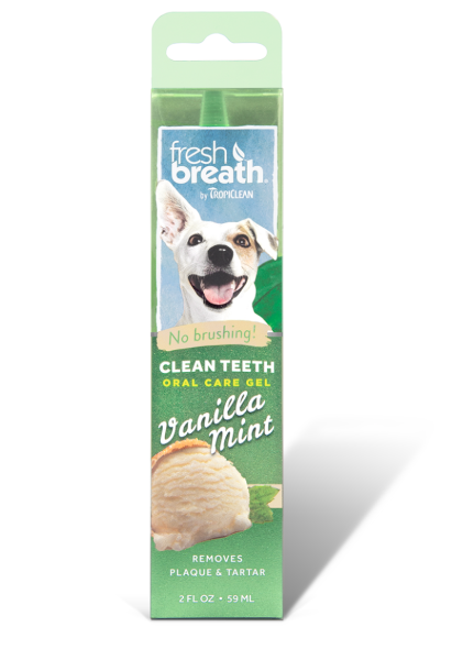 Формула гелю TropiClean Fresh Breath містить суміш натуральних компонентів, які допомагають створити здорове середовище в ротовій порожнині тварини: знищує бактерії, які викликають неприємний запах з рота, очищає зуби від нальоту, розм’якшує зубний камінь та запобігає гінгівіт. І найприємніше – зубна щітка більше не потрібна!