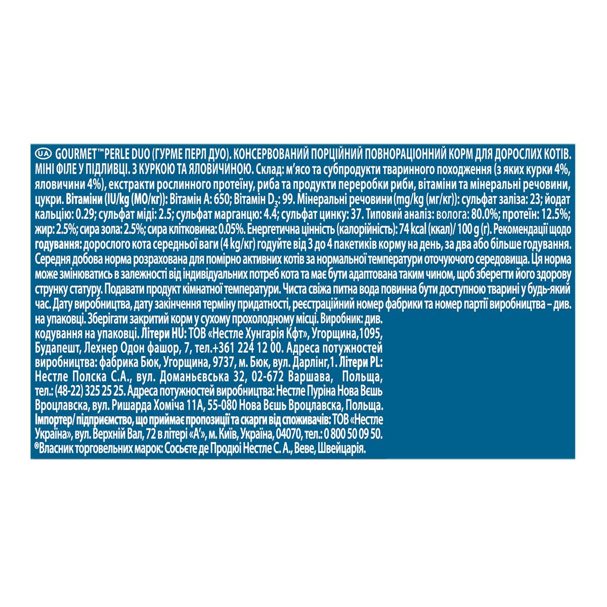 574702 – Gourmet Perle (Пауч) Консерви для кішок міні філе в підливі з куркою і яловичиною (85 гр)