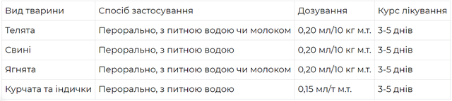 Лікування та профілактика кишкових інфекцій, викликаних неінвазивними методами у корів, свиней, овець, свійської птиці. Кишкова паличка сприйнятлива до Колістіна. Перед профілактичним лікуванням слід встановити наявність захворювання на стаді.