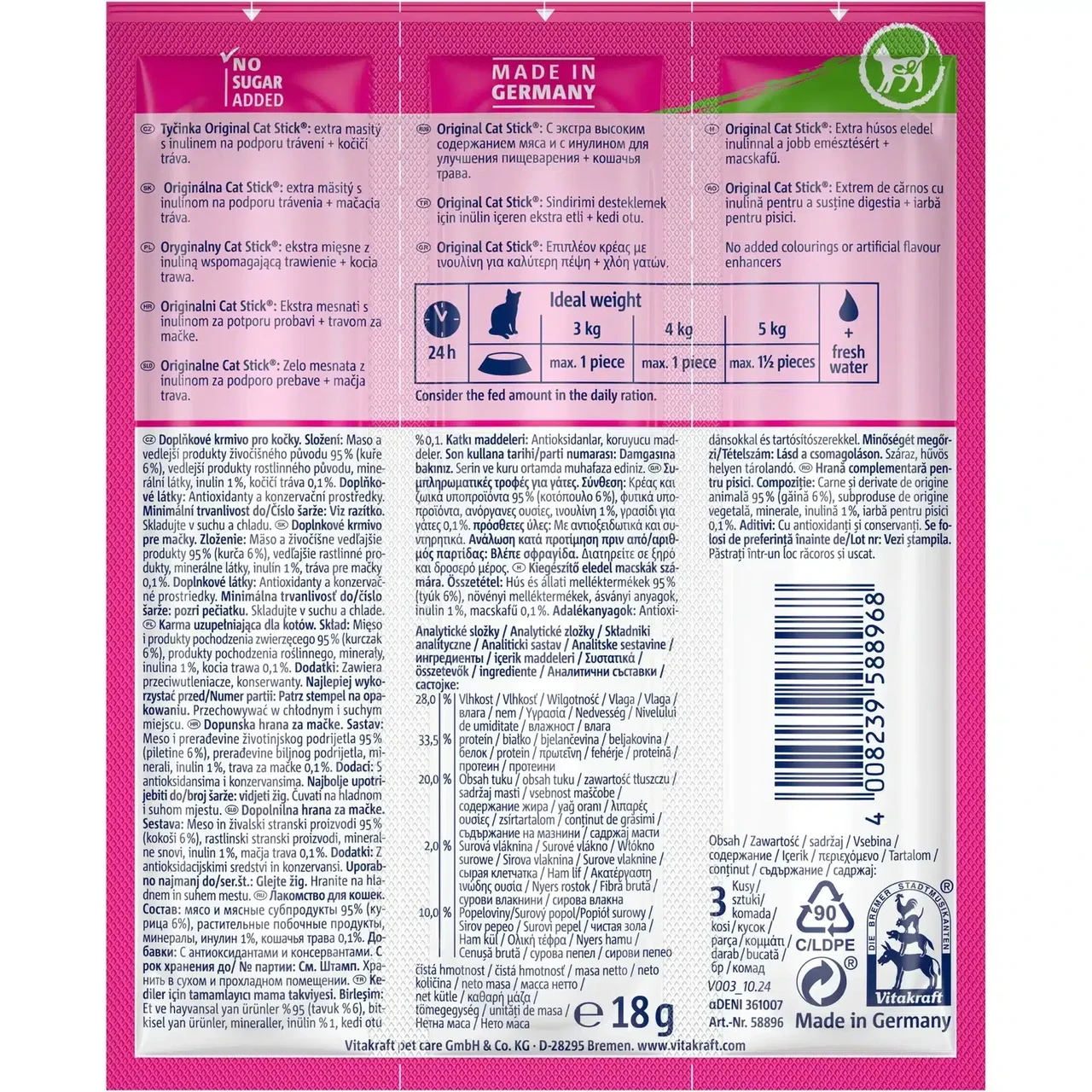 М’ясні палички для котів Вітакрафт Vitakraft ласощі з куркою та котячою травою, 3 шт х 6 г