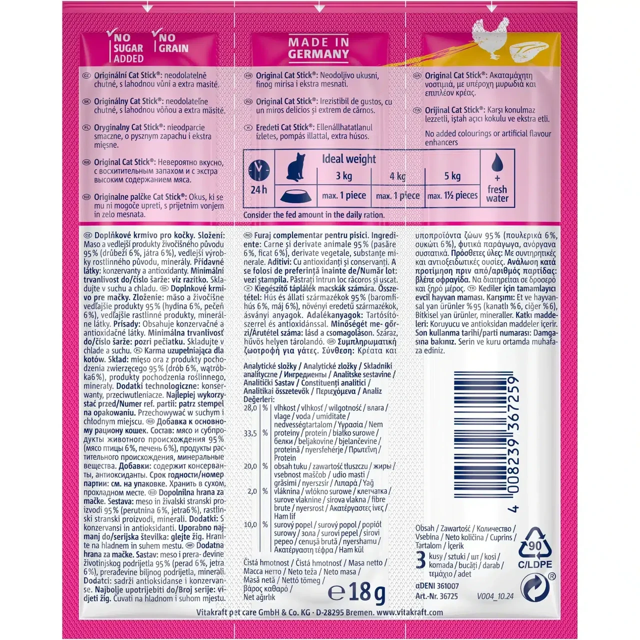 М’ясні палички для котів Вітакрафт Vitakraft ласощі з птицею та печінкою, 3 шт х 6 г