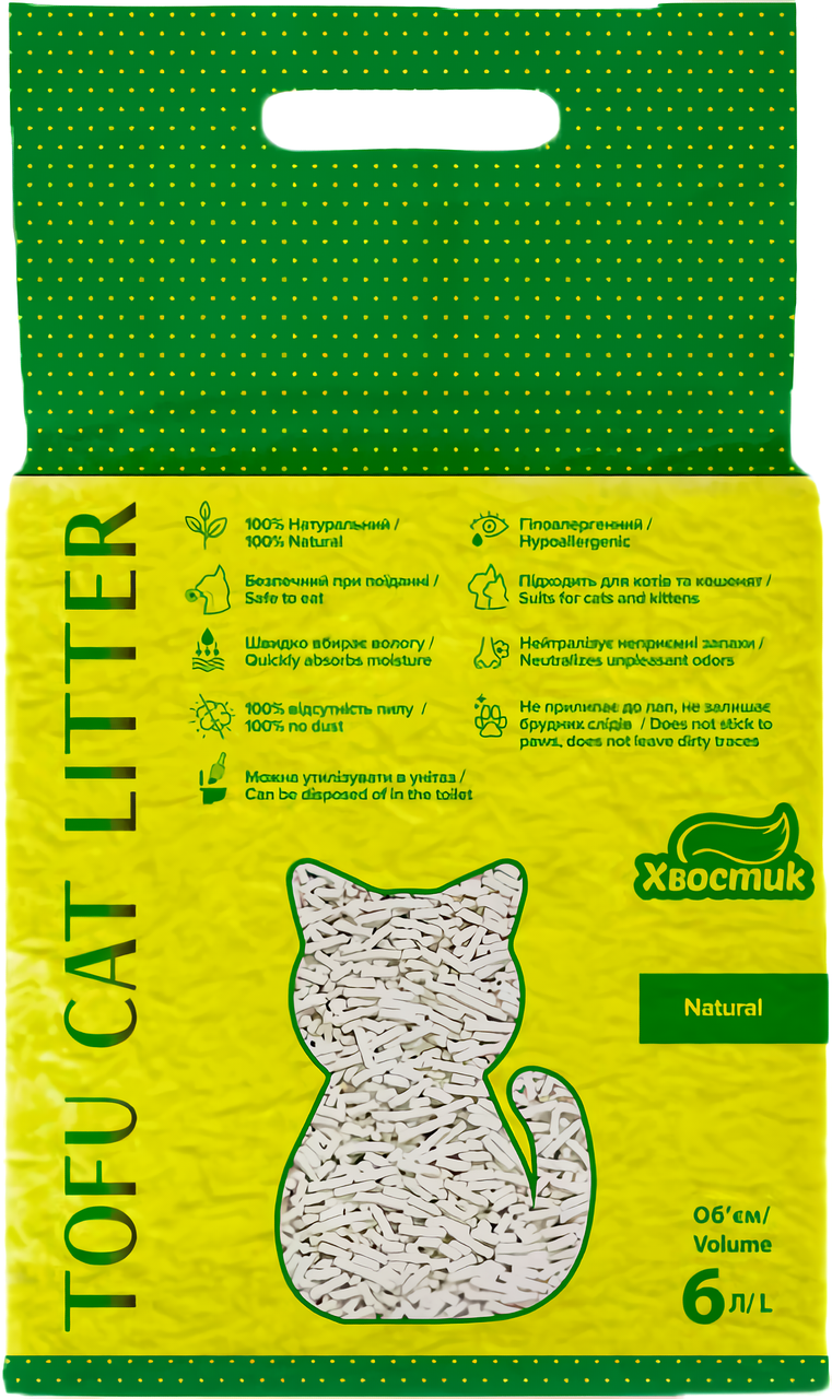 Наповнювач Tofu (Тофу) соєвий для котів класик 2.6 кг (6 л), Хвостик