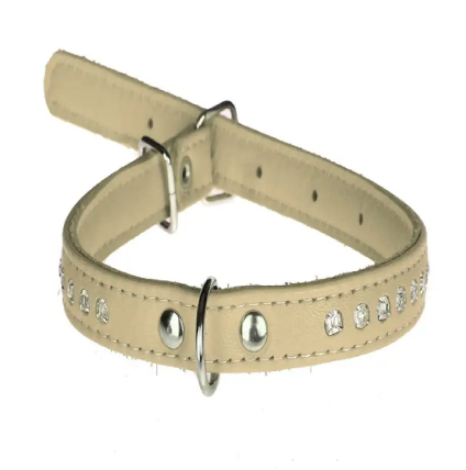 Нашийник 1674 15мм “Люкс” 1 стор. прикрашений стразами Бежевий