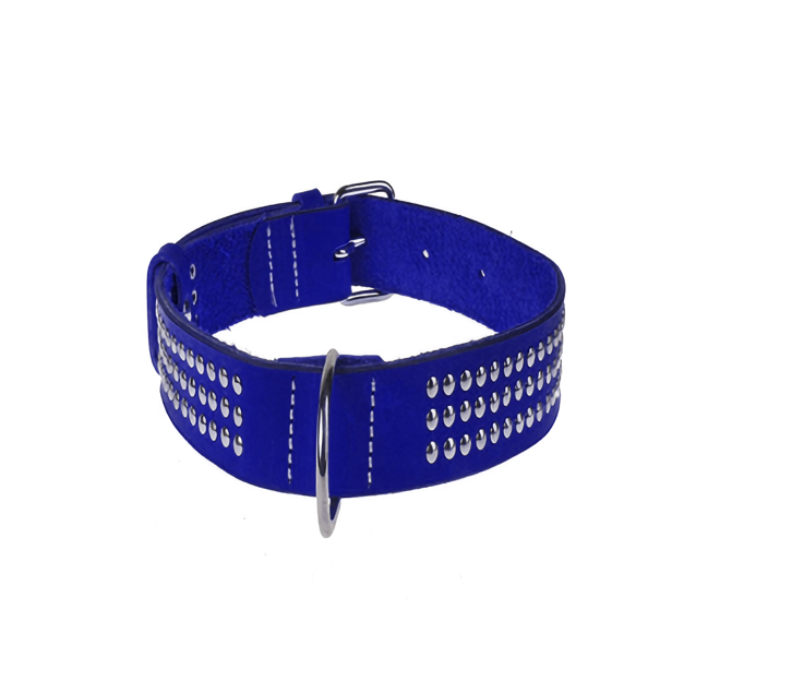 Нашийник 4365 30мм “Класик преміум” шкіряний прикрашений металофурн. Синій