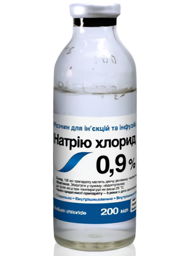 Натрію хлорид 0,9% ветеринарний 200 мл, (ціна за 1 ящик: 20 флаконів)