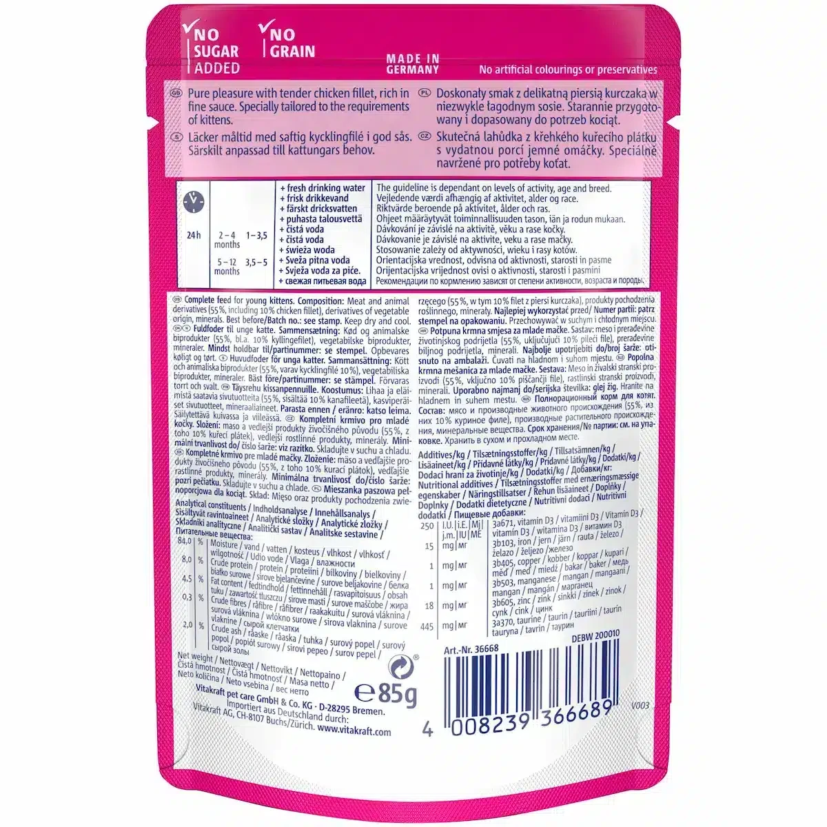 Повнораціонний вологий корм для кошенят Вітакрафт Vitakraft Poésie Délice від 2 до 12 місяців з куркою в соусі, 85 г