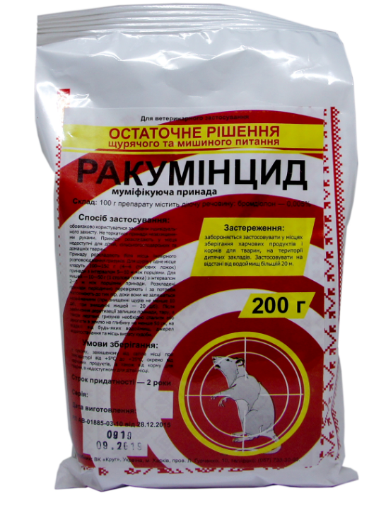 “Ракумінцід” – високоефективна отрута для мишей і щурів, 200 г (Круг)
