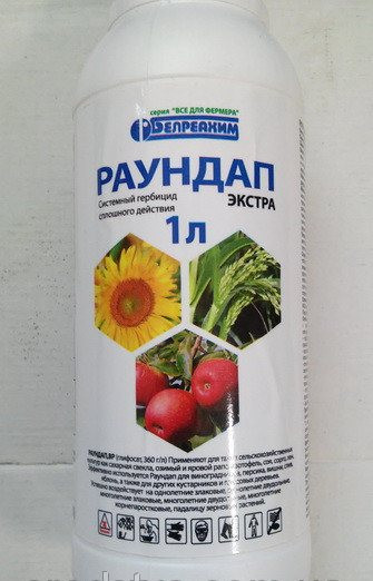 Засіб від бур'янів Раундап – універсальний препарат для знищення будь-яких бур'янистих рослин. Раундап є одним з найпоширеніших гербіцидів у всьому світі. Препарат застосовується в якості системного гербіциду суцільної дії, обробка проводиться перед посівом або до появи сходів. Раундап від бур'янів впливає тільки на листя або молоді пагони, не має ґрунтової активністю!