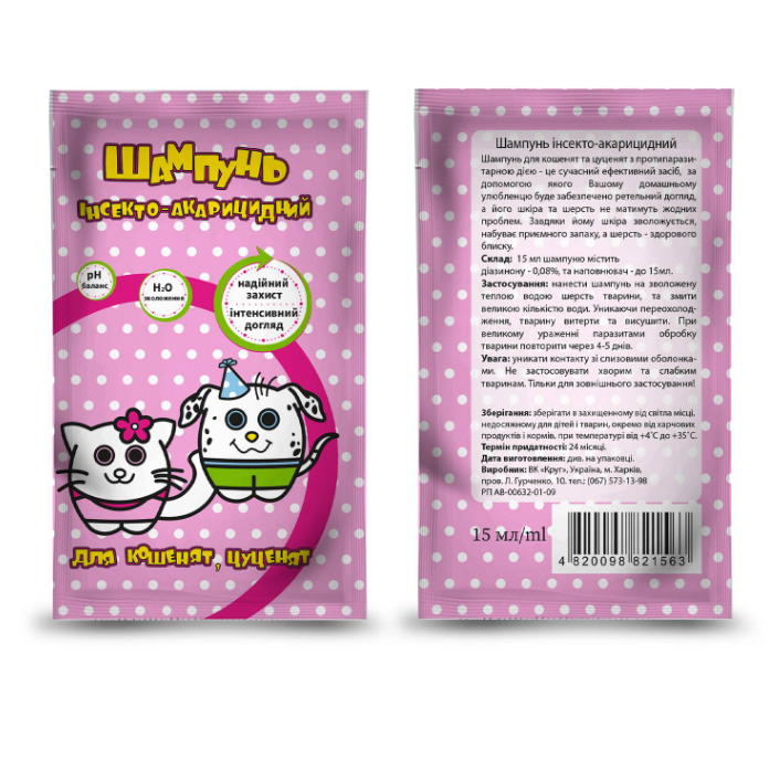 “Шампунь інсектоакарицидний для цуценят і кошенят”, 15 мл (Круг)