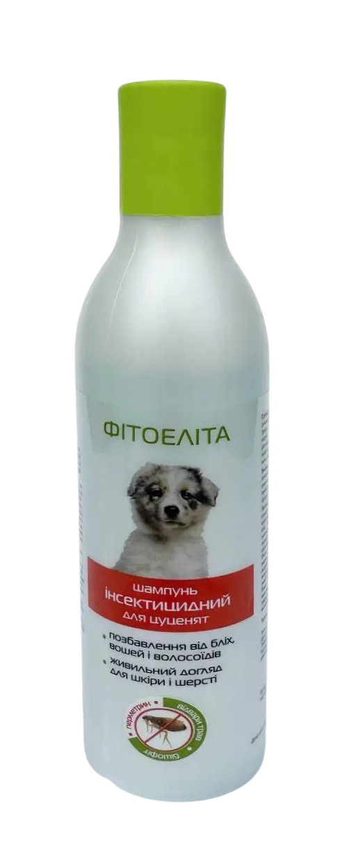 Шампуні серії Фітоеліта – це ефективні, натуральні та безпечні миючі засоби на основі настоїв лікарських трав. Шампунь інсектицидний для цуценят розроблений для захисту тварини від ектопаразитів (бліх, вошей, власоїдів), ефективно знімає свербіж та алергічні реакції на укуси.