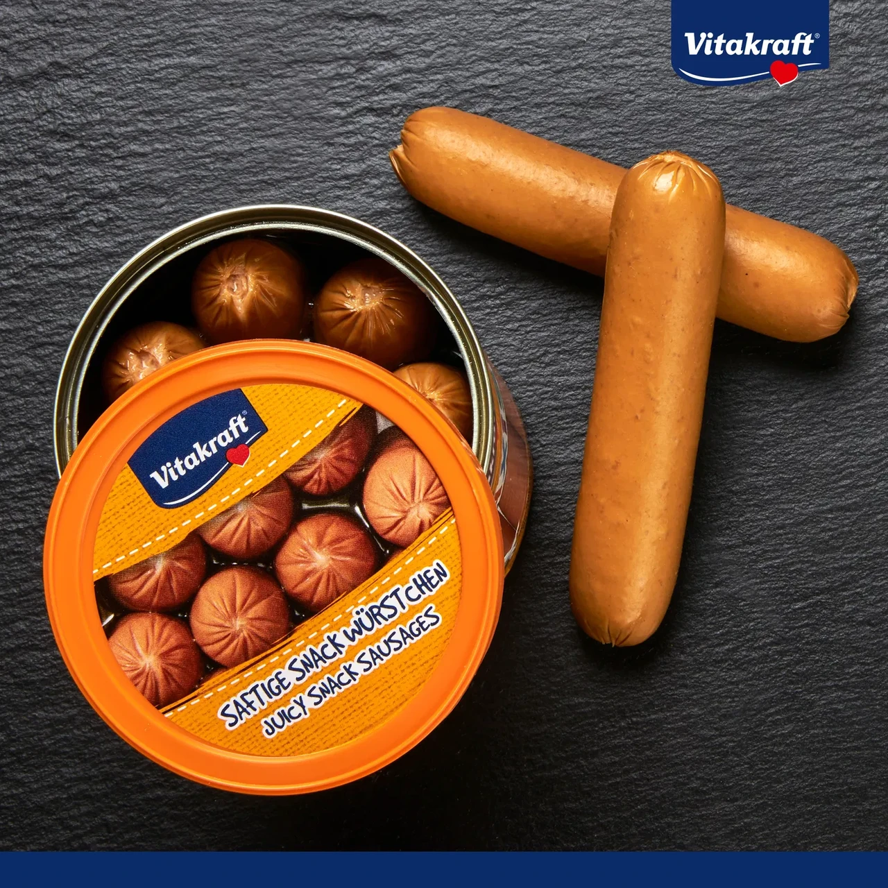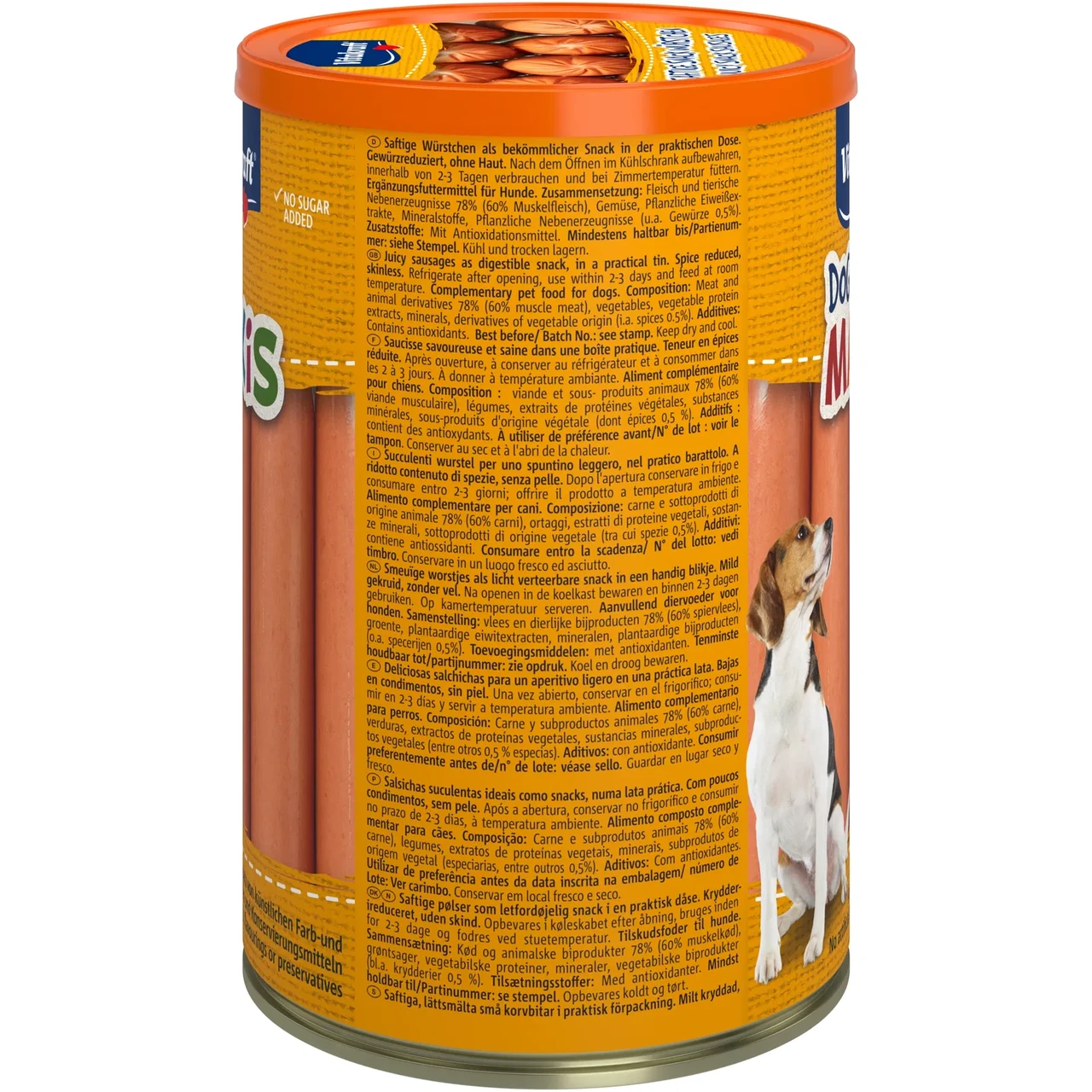 Смачні ковбаски у практичній бляшаній упаковці спеціально розроблені для собак.
