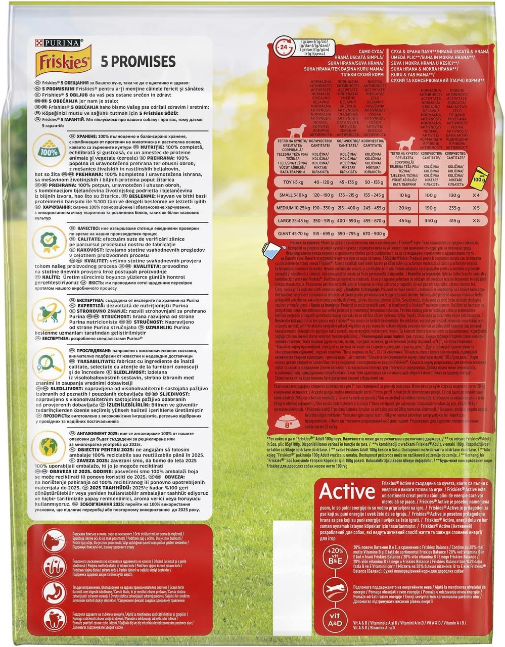 Сухий корм для собак Friskies® Active (Активний) розроблений спеціально для улюбленців, що ведуть активний спосіб життя та завжди сповнені енергії для ігор.
