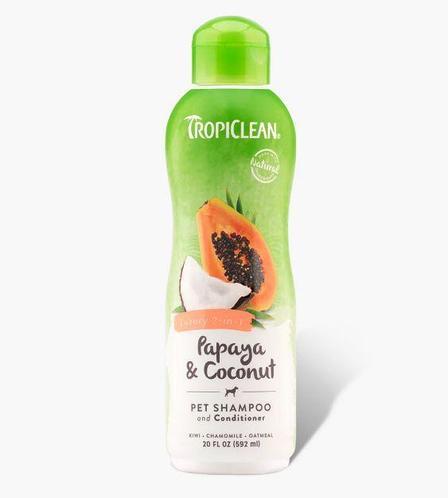 Тропиклин Papaya Plus 2 in 1 – натуральний шампунь-кондиціонер для собак і кішок з екстрактами папайї, кокоса і вітаміну Е.