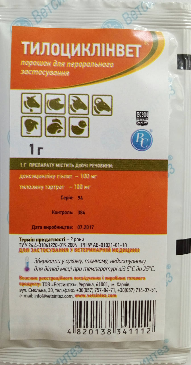 Тилоциклінвет порошок для перорального застосування 1 г, Ветсинтез